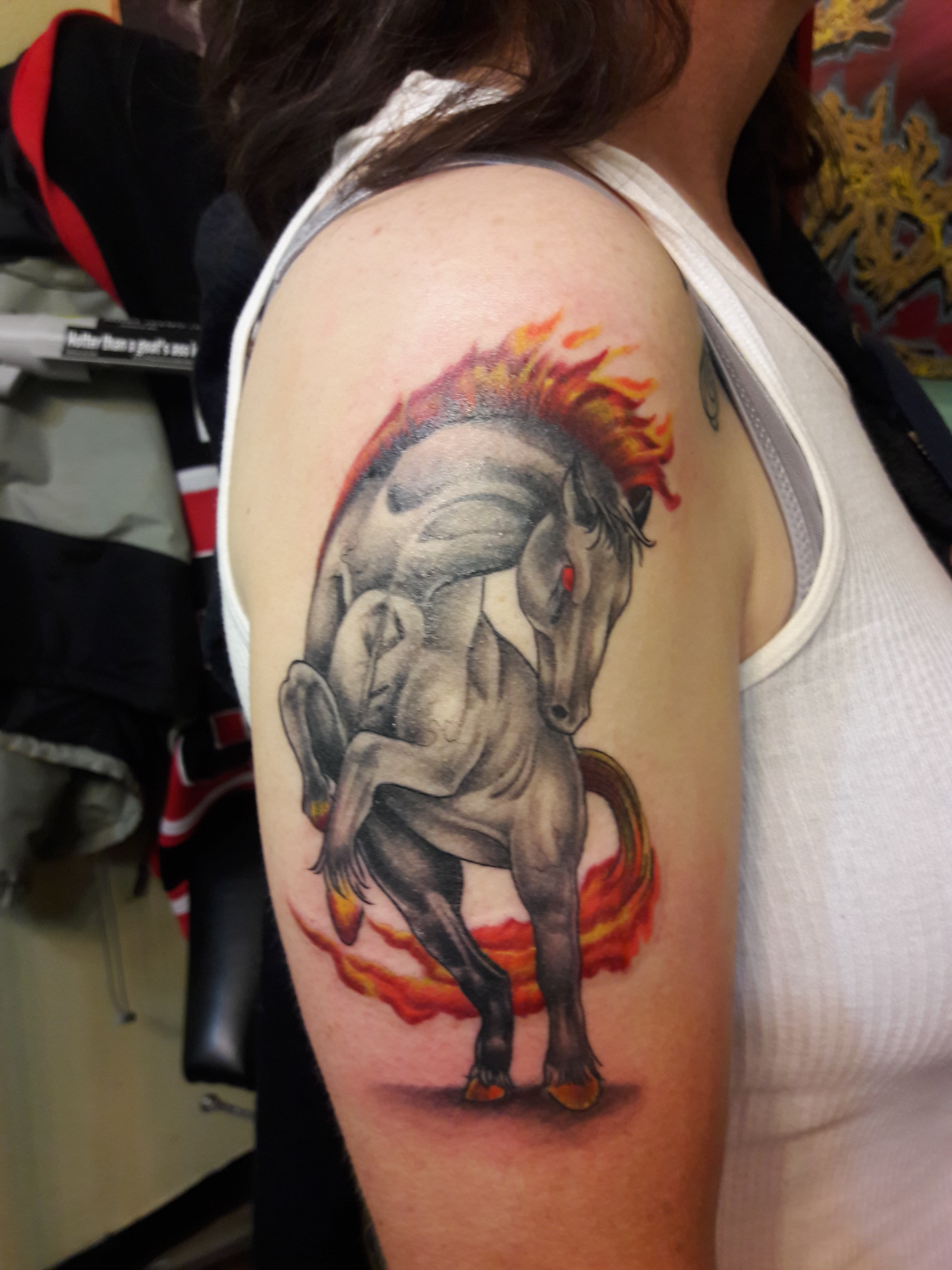 “They would show the tattoos on the ladies and the men and would say, ‘if you want your own, come backstage and get one for a nominal fee.’ I love tattoos and I love circuses and so here we are,”